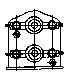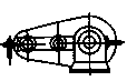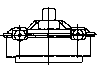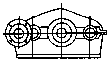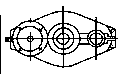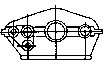 單級三環(huán)傳動,二高速軸位于低速軸兩側(cè),各軸豎置,箱體平置座裝。 |