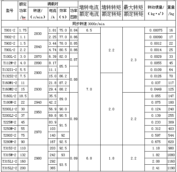 | 當(dāng)前位置:減速機(jī)首頁 >> 產(chǎn)品大全 >> 異步電動(dòng)機(jī) >> Y系列(IP44)小型三相異步電動(dòng)機(jī) >> Y系列(IP44)三相異步電動(dòng)機(jī)主要技術(shù)參數(shù)(同步轉(zhuǎn)速3000r/min) |
