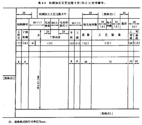 批大量生產(chǎn),除了有較細(xì)的工藝過(guò)程卡外,還要編制機(jī)械加工(或裝配)工序卡。目前,生產(chǎn)中用來(lái)說(shuō)明工藝規(guī)程的幾鐘工藝文件,其需包含的內(nèi)容和具體格式已經(jīng)標(biāo)準(zhǔn)化(見JB/Z187·3—82)。表4-3~表4-6摘錄了機(jī)械加工工藝過(guò)程卡片和機(jī)械加工工序卡片的填寫格式和填寫內(nèi)容。