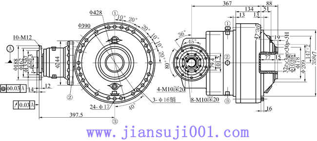 | 當(dāng)前位置:減速機(jī)首頁(yè) >> 產(chǎn)品大全 >> 行星齒輪減速機(jī) >> NS1.5、NS3錐齒輪行星齒輪減速器 >> NS3-63.2錐齒輪行星齒輪減速機(jī)型式與尺寸 |