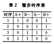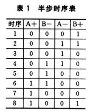 步進(jìn)電機(jī)有兩種工作方式:整步方式和半步方式。以步進(jìn)角1.8°四相混合式步進(jìn)電機(jī)為例,在整步方式下,步進(jìn)電機(jī)每接收一個脈沖,旋轉(zhuǎn)1.8°,旋轉(zhuǎn)一周,則需要2OO個脈沖。在半步方式下,步進(jìn)電機(jī)每接收一個脈沖,旋轉(zhuǎn)0.9°,旋轉(zhuǎn)一周,則需要4OO個脈沖。控制步進(jìn)電機(jī)旋轉(zhuǎn)必須按一定時序?qū)Σ竭M(jìn)電機(jī)引線輸入脈沖。以上述四相六線制電進(jìn)電機(jī)為例,其半步工作方式和整步工作方式的控制時序如表1和表2所列。