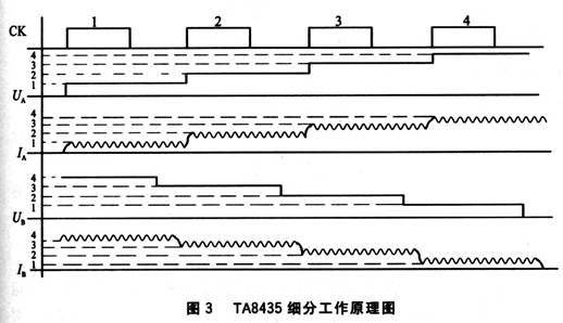 2 基于TA8435H芯片的步進(jìn)電機(jī)細(xì)分方式