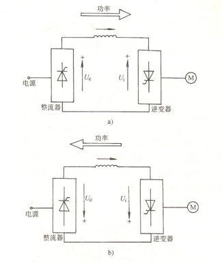2.采用電流型變頻器時 對于電流型變頻器,再生時直流電流方向不變,而直流電壓的方向反向,所以整流器部分不需要可逆方式,用不可逆整流器即可。圖14示出電流型變頻器的直流電流與直流電壓的關(guān)系。