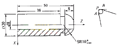 以A、B 點(diǎn)對刀,并在相應(yīng)方向使刀具增加位移量:(偏刀類)X =2r,Z =r,或(尖刀類)X =2r,Z =0;