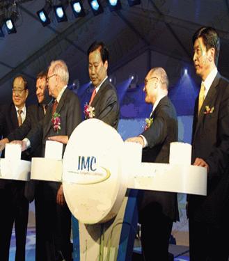 巴菲特同IMC集團及大連市領(lǐng)導(dǎo)為IMC大連新工廠開業(yè)慶典啟動按鈕 |