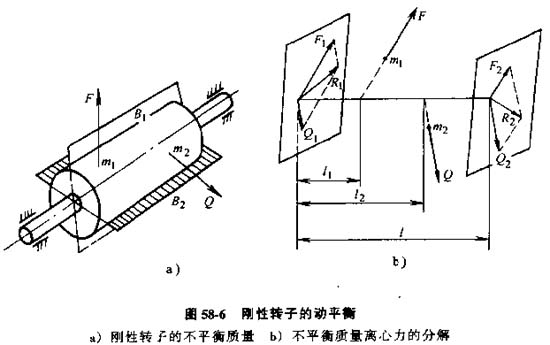 為了更精確地確定較小的不平衡質(zhì)量的位置,可以用試重周移法。先沿葉輪圓周劃分若干等分(如圖58-5a中為8等分),并依次標(biāo)上號碼。平衡時依次在各號碼處選擇一個載荷,使各點在試加載荷的作用下,從水面平面開始隨同葉輪以同一方向轉(zhuǎn)動相同的角度。將各點的試加載荷標(biāo)在圖表上,設(shè)形成如圖58-5b所示的曲線,可見葉輪的輕側(cè)在6重側(cè)在2附近。記在2處加上的載荷為G2,6處加上的載荷為G6,則在輕側(cè)6處加上或重側(cè)2處減去一個平衡質(zhì)量m=)G6-G2)/2,葉輪即可以達(dá)到靜平衡。
