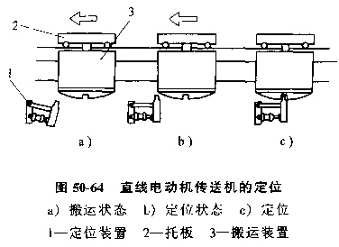 圖50-64顯示直線電動(dòng)機(jī)傳誦機(jī)設(shè)置的定位裝置及其定位過(guò)程。