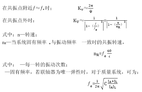 當(dāng)需要減振、緩沖、改善傳動系統(tǒng)對中性能時,應(yīng)選用撓性或彈性聯(lián)軸器,且機(jī)組系統(tǒng)中聯(lián)國器為唯一彈性部件,主、從動機(jī)可簡化為兩個質(zhì)量系統(tǒng),此時可采用以下計算,其他情況則需引入振動計算。