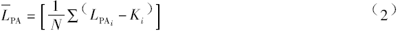 當各測點的A計權(quán)聲壓級之差不超過5dB時,可由式2計算LPA: