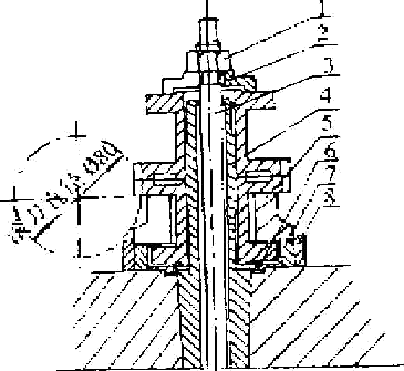 1.螺母 2.開(kāi)口墊 3.拉桿 4.芯棒 5.開(kāi)口套 6.底墊 7.內(nèi)定位套 8.外定位套