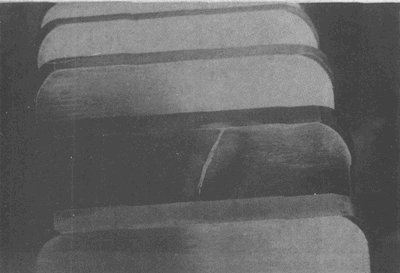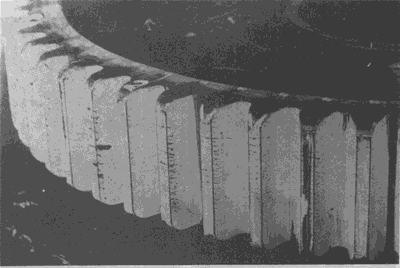 在大齒輪齒頂形成的淬火裂紋(這種裂紋通常都在這個(gè)區(qū)域出現(xiàn))。