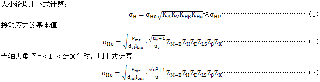 ——接觸應力,根據(jù)齒輪的幾何尺寸,制造精度,輪緣、軸承和軸承座的剛性,傳遞的轉矩,用接觸應力公式(見6.2.1)進行計算。