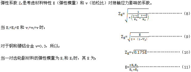 錐齒輪承載能力計(jì)算方法第 2 部分:齒面接觸疲勞(點(diǎn)蝕)強(qiáng)度計(jì)算彈性系數(shù)ZE(GB/T10062.2-2003)