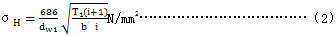b.根據(jù)實測齒面未點蝕的當量齒寬b′按下列簡化式計算齒面接觸應力σH:
