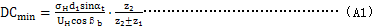 A2滲碳淬火齒輪分度圓處最小有效硬化層層深度DCmin,可根據(jù)接觸載荷引起最大剪切應(yīng)力的深度計算,計算公式見式(A1)。