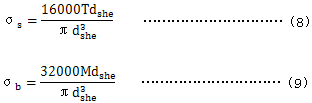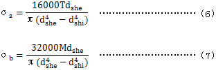 軸的名義應(yīng)力按以下公式計(jì)算。公式(6)與公式(7)可應(yīng)用于薄壁軸的設(shè)計(jì),這里比值dshi/dshe<0.9是不允許的。
