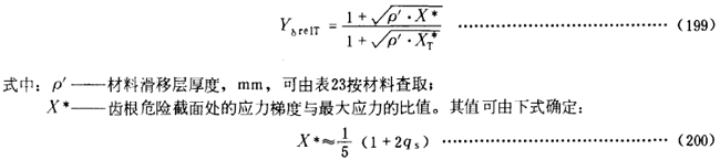 相對(duì)齒根表面狀況系數(shù)YRrelT為所計(jì)算齒輪的齒根表面狀況系數(shù)與試驗(yàn)齒輪的齒根表面關(guān)況系數(shù)的比值。