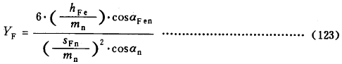 hFe——彎曲力臂。外齒輪由式(137)計(jì)算,內(nèi)齒輪由式(142)計(jì)算。