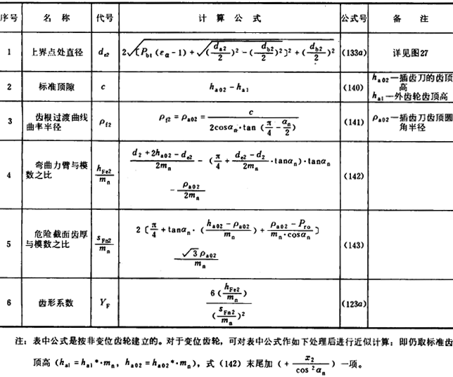 表17外齒輪齒形系數(shù)YFa的有關(guān)公式