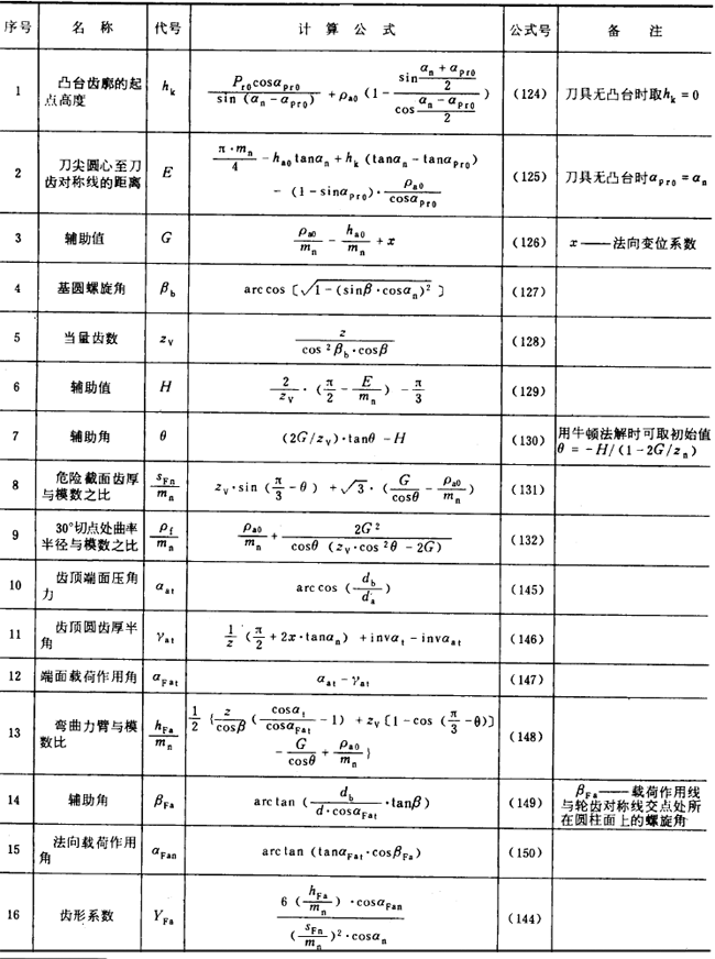 表16內(nèi)齒輪齒形系數(shù)YF的有關(guān)公式