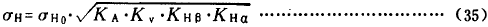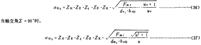 赫茲應(yīng)力是影響齒面接觸應(yīng)力的基本因素。本標(biāo)準(zhǔn)考慮工作條件將修正后的赫茲應(yīng)力作為齒面計算接觸應(yīng)力。