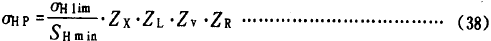 式中:σHlim——試驗齒輪的接觸疲勞極限,N/mm2,見8.10條;