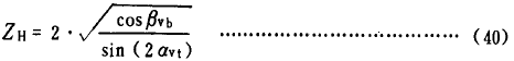 節(jié)點區(qū)域系數(shù)ZH是考慮節(jié)點處齒廓曲線半徑對接觸應(yīng)力的影響,并將分度圓上切向力折算為節(jié)圓上法向力的系數(shù)。