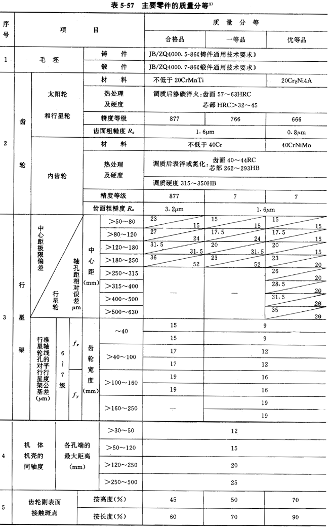 ⑥主要零件材料及加工、質(zhì)量應符合表5-57~5-58規(guī)定,應得分數(shù)50分。
