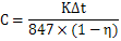 式中C——單位散熱面積的熱功率,KW/m2。由圖8-21和圖8-22查得,或按下式計算