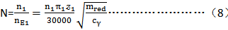 本標準采用了修正的ISO6336-1:1996的C2法,目的是為了考慮 由于小輪彈性變形與制造誤差而引起的嚙合齒向誤差的影響。