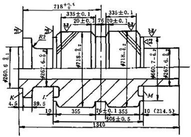 校正兩端輪齒節(jié)圓跳動≤0.03mm。車去φ720mm臺階,車準(zhǔn)內(nèi)孔,倒角為8×20°,在另一端面光一刀作校調(diào)用