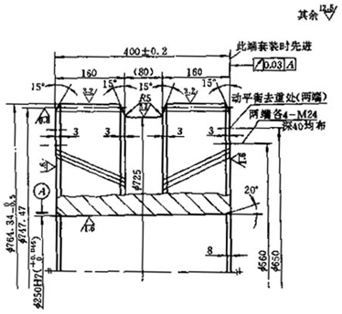 工作調(diào)面校內(nèi)孔,端面圓跳動≤0.02mm。車去φ720mm臺階,保持工件總厚400+0.2 +0.1mm,孔口倒角8×20°,端面打印原標(biāo)記 |