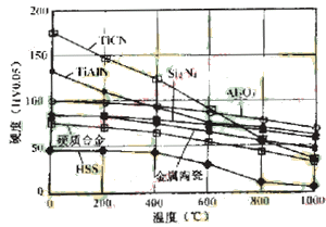 干切削不僅要求刀具材料有很高的紅硬性和熱韌性,而且還必須有良好的耐磨性、耐熱沖擊和抗粘結(jié)性。圖1列出了幾種刀具材料的硬度與溫度的關(guān)系。由圖可見,陶瓷刀具(Al2O3,Si3N4)、金屬陶瓷(Cermet)等材料的硬度在高溫下也很少降低,即具有很好的紅硬性,因此很適合于一般目的的干切削?墒沁@類材料般較脆,熱韌性不好,不適用于進(jìn)行斷續(xù)切削。立為氮化硼(CBN)、聚晶金剛石(PCD)、超細(xì)晶粒硬質(zhì)合金等超硬刀具材料則廣泛用于干切削。