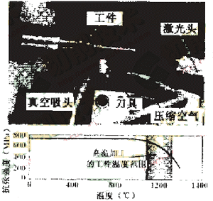 硬車是一種“以車代磨”的新工藝,用于某些不適宜進(jìn)行磨削的回轉(zhuǎn)休零件的加工,是一種高效的干切削技術(shù)。在對(duì)氮化硅(Si3N4) 工件進(jìn)行硬車時(shí).由于該材料有極高的抗拉強(qiáng)度,使任何刀具都很快破損?刹捎眉す廨o助切削,用激光束對(duì)工件切削區(qū)進(jìn)行預(yù)熱(見圖2),使工件材料局部軟化 (其抗拉強(qiáng)度由750MPa降至400MPa),則可減小切削阻力30%~70% ,刀具磨損可降低80%左右,干切削過程中的振動(dòng)也大為減小.大大提高了材料切除率.使干切削得以順利進(jìn)行。