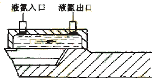 鈦鋁釩合金(Ti6Al4V)和反應(yīng)燒結(jié)氮化硅(RBSN)是典型的難加工材料,其傳熱系數(shù)很小,干加工中產(chǎn)生大量的熱,使刀具材料發(fā)生化學(xué)分解,刀具很決磨損,圖3所示為用液氮冷卻刀具加工這類材料的新方法。