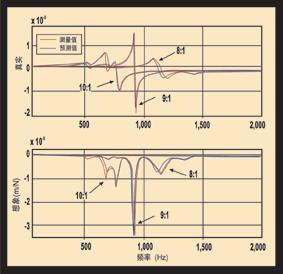 圖3:某些工程師可能將這些圖看成是頻率響應(yīng)圖的“真實(shí)”和“想象”成分。但是這里不需要理解它是什么含義。圖形表示在某個(gè)給定的應(yīng)用場合以不同懸伸長度使用同一把刀具發(fā)生顫振的趨勢。振幅較高意味著發(fā)生顫振的趨勢較高。這些圖表示,在將長徑比從8:1增加到9:1時(shí),增加懸伸長度會增加顫振的趨勢。但是,當(dāng)這種比例增加到10:1時(shí),這種趨勢又倒過來了,此時(shí)卻產(chǎn)生了更加穩(wěn)定的懸伸值。