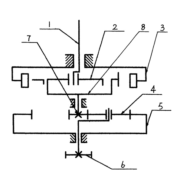 回轉減速機,主要由擺線針輪部份和行星齒輪部份組成,其特征在于:將擺線針輪的輸出機構與行星齒輪部份中的輸入太陽輪固定連接,使擺線針輪的輸出部份和行星齒輪的輸入部份連接為一體。