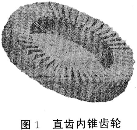 近幾年來,隨著科學(xué)技術(shù)的高速發(fā)展,人們又研制出了一種很有發(fā)展前途的減速傳動裝置——章動齒輪傳動系統(tǒng),與傳統(tǒng)的齒輪減速裝置相比,該傳動系統(tǒng)不僅能實現(xiàn)大傳動比傳動,而且具有傳動平穩(wěn)、結(jié)構(gòu)緊湊、承載能力強(qiáng)、壽命長等優(yōu)點,因此受到各個行業(yè)及科研單位的廣泛關(guān)注。但是由于其關(guān)鍵部件內(nèi)錐齒輪(如圖1所示)加工制造困難,在很大程度上制約了該傳動系統(tǒng)的廣泛應(yīng)用。雖然使用的刀具價格非常昂貴,而且裝夾困難。下面提出了利用直齒錐齒輪刨齒機(jī)和萬能銑床加工內(nèi)錐齒輪的方法。