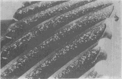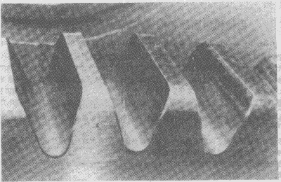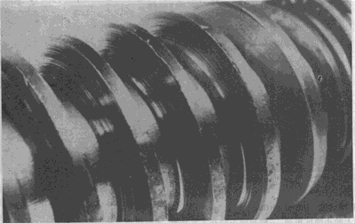 蝸桿螺旋工作面頂部的明顯飛邊。這種飛邊是由于壓力和沿有效齒面滑動(dòng)的作用產(chǎn)生塑性變形所致。