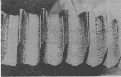 齒面上垂直于滑動(dòng)方向的微小皺紋。這些小皺紋本身也是波狀的,而不是直的,看上去其形狀如同風(fēng)吹沙土,水沖泥漿一樣,只是規(guī)模小得多而已。