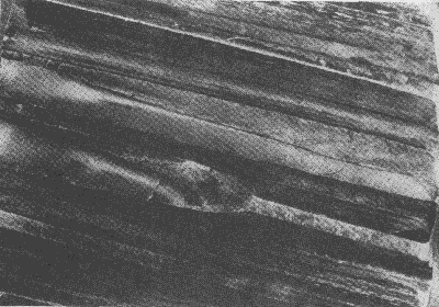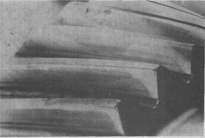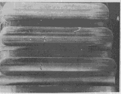 輪齒的滾壓塑變。圖為一從動(dòng)齒輪,其齒面上工作節(jié)曲面附近明顯的隆起清晰可見。
