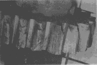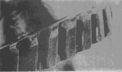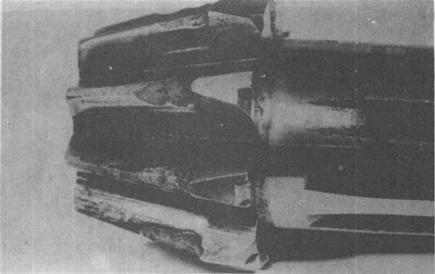 在這幾個(gè)輪齒上由于齒輪傳遞的載荷集中于靠近一端的一小部分齒面上,因而造成齒面嚴(yán)重點(diǎn)蝕,從而導(dǎo)致其下一輪齒疲勞折斷。