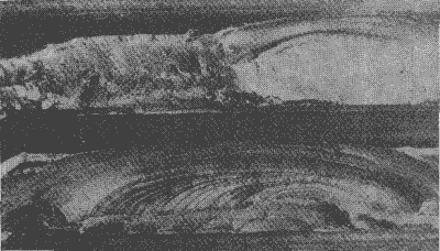 表示齒面一個(gè)蝕坑如何在齒面里層發(fā)展的一輪齒橫截面。