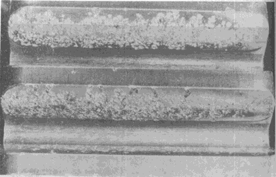大齒輪齒面的初期點(diǎn)蝕。點(diǎn)蝕密度最大區(qū)與表面載荷最高區(qū)相一致。