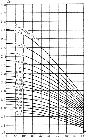 螺旋角系數(shù)Yβ也可根據(jù)β角和縱向重合度εβ由圖21查取。