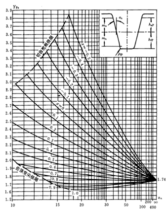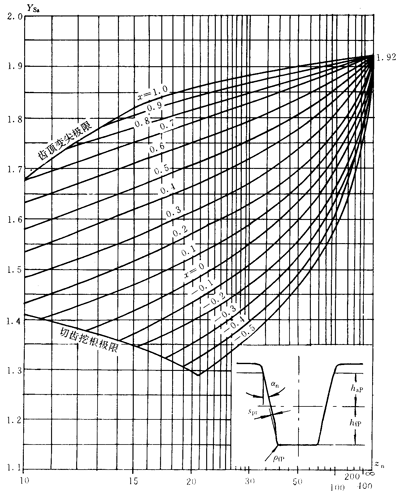 應(yīng)力修正系數(shù)Ys和Ysa是將名義彎曲應(yīng)力換算成齒根局部應(yīng)力的系數(shù)。它考慮了齒根過(guò)渡曲線處的應(yīng)力集中效應(yīng),以及彎曲應(yīng)力以外的其他應(yīng)力對(duì)齒根應(yīng)力的影響。