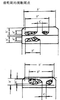 沿齒長(zhǎng)方向:接觸痕跡的長(zhǎng)度  (扣除超過模數(shù)值的斷開部分C)與工作長(zhǎng)度  之比的百分?jǐn)?shù),即
