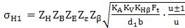 考慮到行星輪之間的切向載荷分配的不均勻性,引入了系數(shù)Kγ(見B1.1),因此,每個行星輪的平均切向力為Fm=FtKAKγKV,Ft為每個嚙合副所傳遞的名義切向力,對雙斜齒輪Ft為兩個單邊斜齒輪的載荷之和。