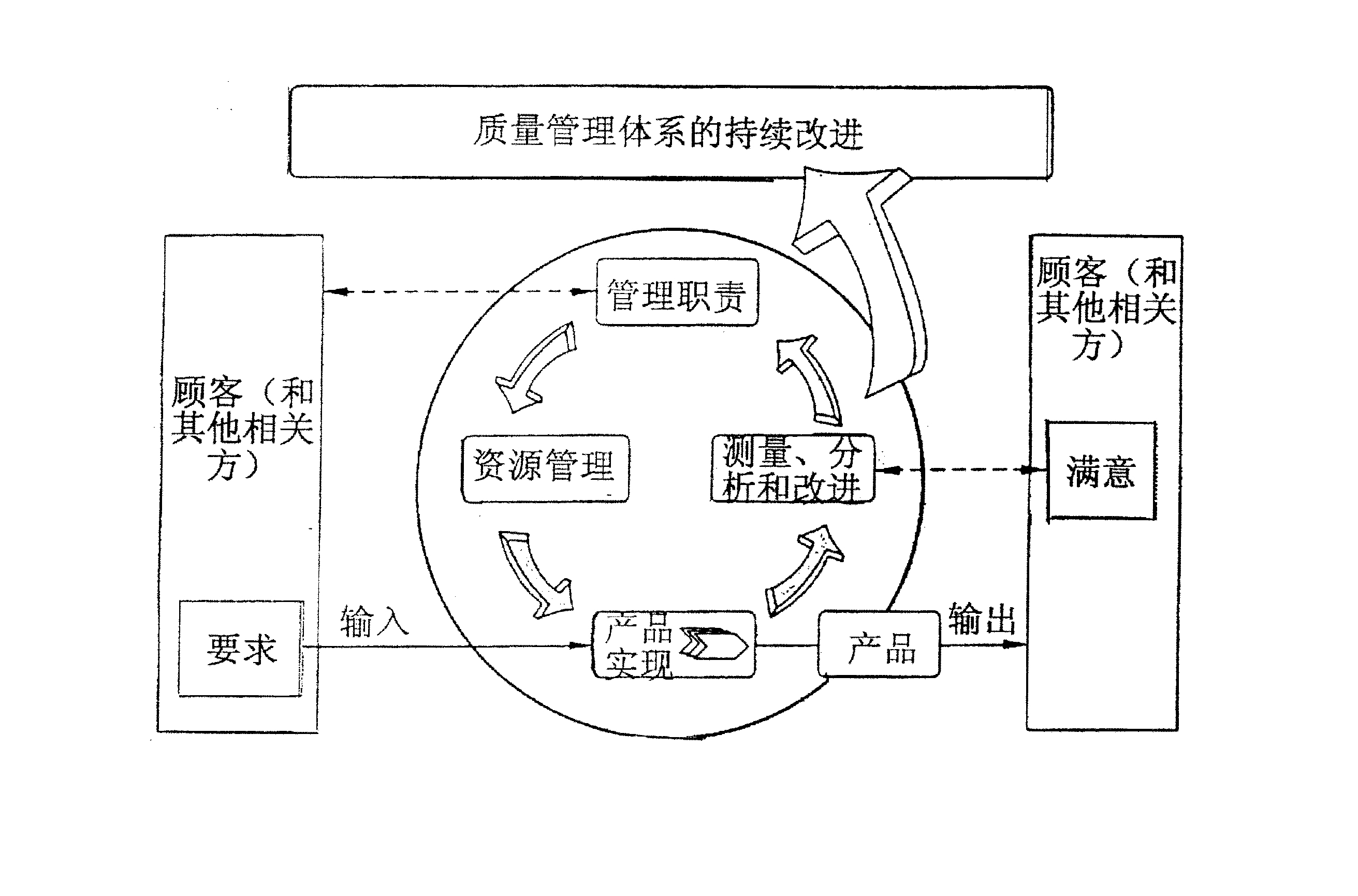 GB/T19000族標(biāo)準(zhǔn)表述的,以過程為基礎(chǔ)的質(zhì)量管理體系如圖1所示。該圖表明在向組織提供輸入方面相關(guān)方起重要作用。監(jiān)視相關(guān)方滿意程度需要評價有關(guān)相關(guān)方感受的信