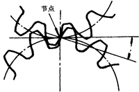 在相反軸齒輪副中使兩軸線重合,或在交錯軸齒輪副中,使兩軸線平行,從而兩齒輪的旋轉(zhuǎn)方向得以相反時,兩軸線之一所必須放置的最大角度,稱為軸交角。